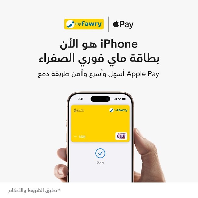 تُعد خدمة Apple Pay سهلة وسريعة الإعداد، حيث يمكن للمستخدمين على أجهزة iPhone فتح تطبيق Apple Wallet، والنقر على علامة “+”، ثم اتباع الخطوات لإضافة بطاقة ماي فوري الصفراء.