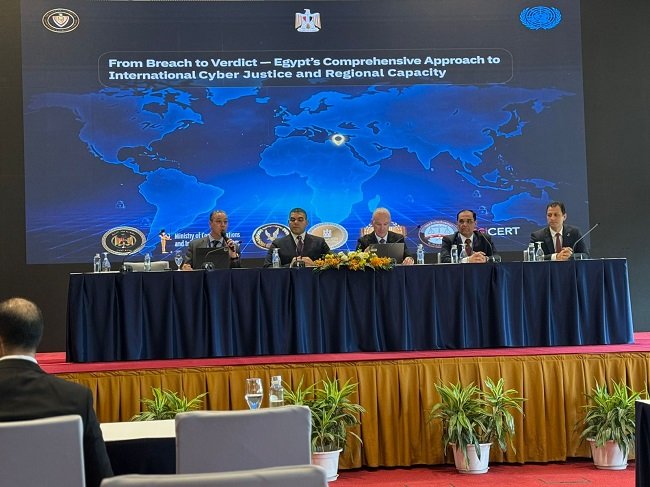 استعرض الوفد المصري خلال الجلسة النهج الوطني الشامل في تحقيق العدالة السيبرانية الدولية، وبناء القدرات الإقليمية في مجالات الأدلة الرقمية والتحقيقات السيبرانية.