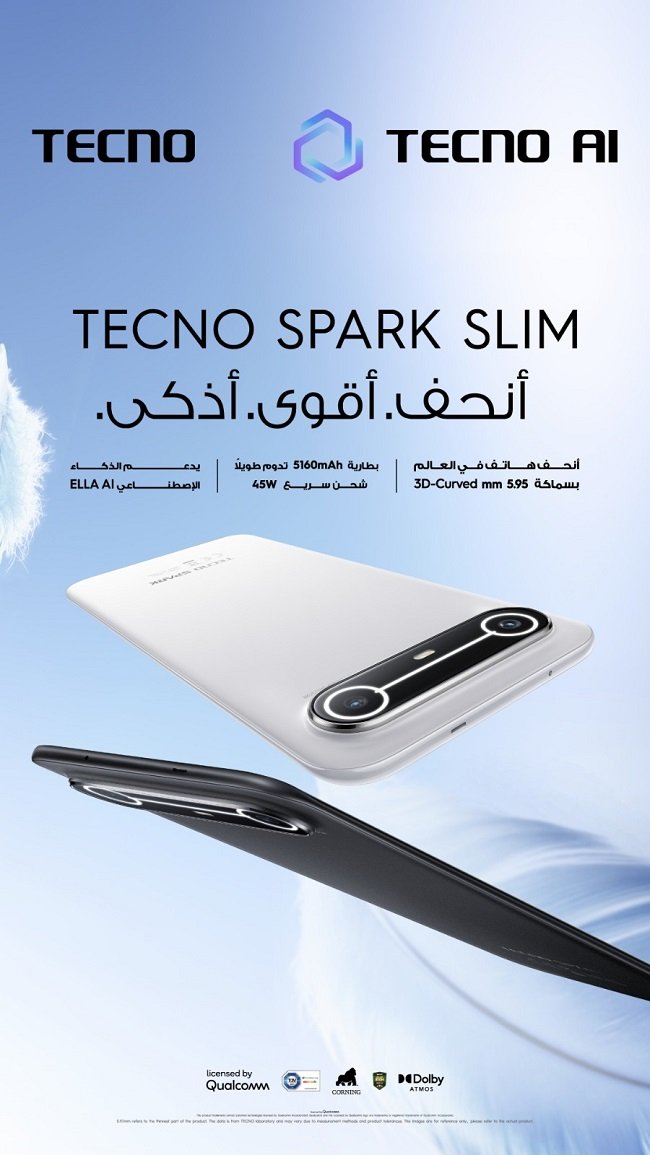 كشفت شركة TECNO، العلامة التجارية العالمية المتخصصة في التكنولوجيا المعتمدة على الذكاء الاصطناعي، عن الإطلاق الرسمي لهاتفها الجديد SPARK Slim في السوق المصري، ليُسجّل حضورًا لافتًا باعتباره أنحف هاتف ذكي في العالم بشاشة منحنية ثلاثية الأبعاد، بسمك لا يتجاوز 5.93 مم، في خطوة تعكس توجه الشركة نحو تقديم مزيج متوازن من الأناقة المتطورة والأداء الذكي وتجربة الاستخدام السلسة.